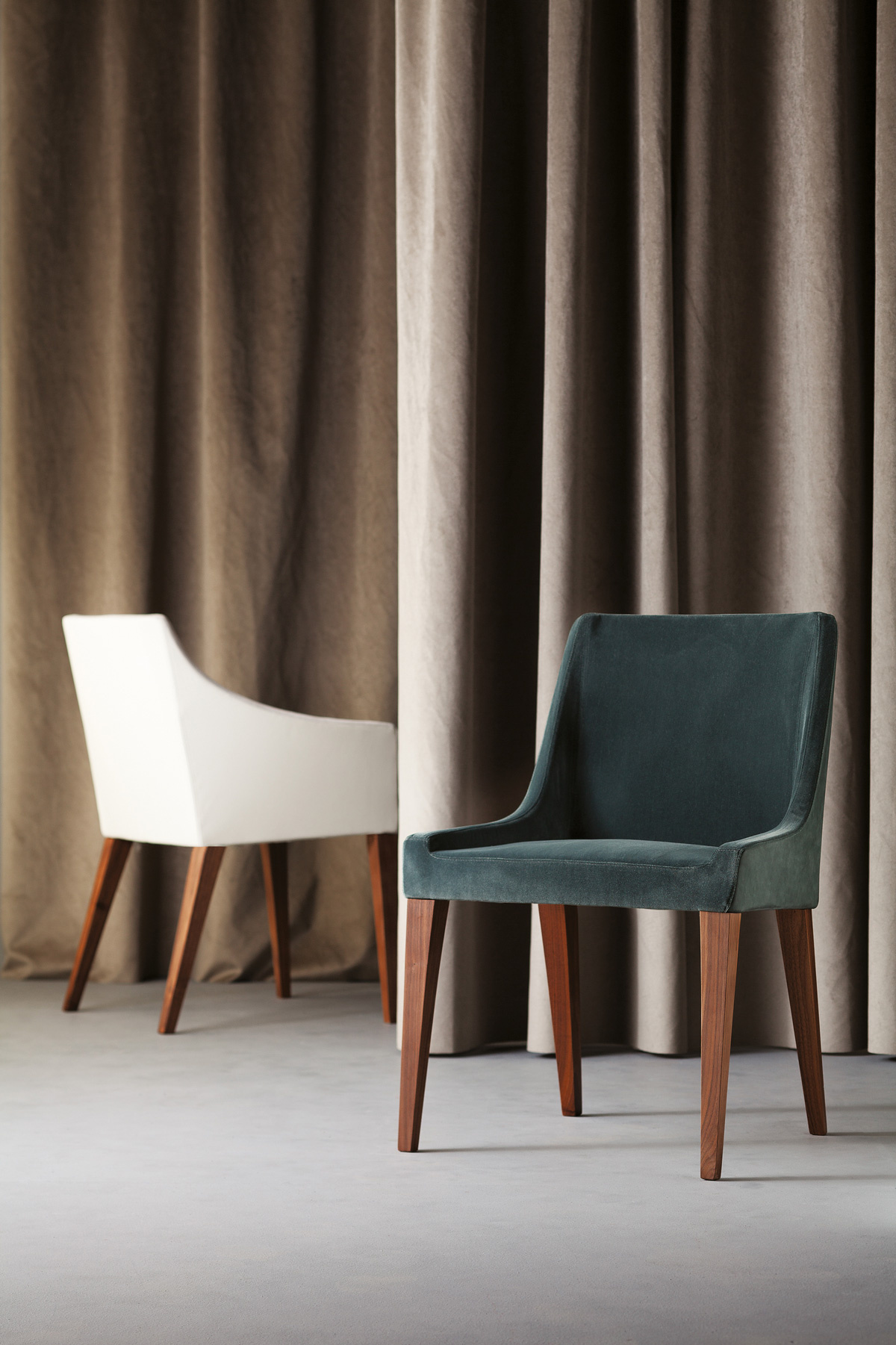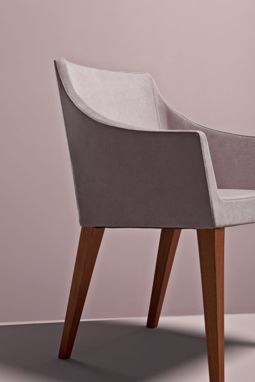 Curves and straight lines combine to form a harmoniously essential whole, designed to offer pleasing relaxation for the body and elegant decor for its setting. The versatility of Noss is emphasized by the possibility of combining both the chair and the armchair with different types of metal base or skilfully crafted wooden legs, to suit any style of furnishing, in offices, restaurants or waiting rooms.