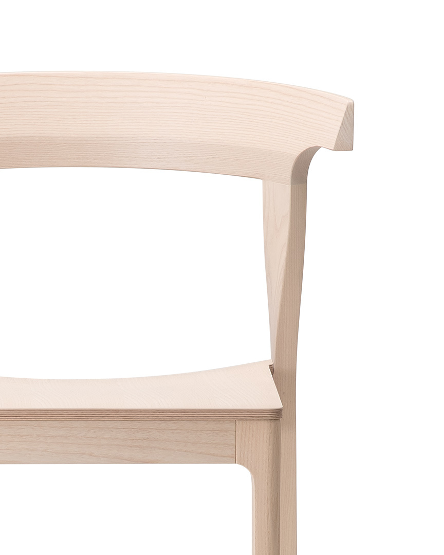 Barstool with ash wood frame and ash plywood seat. Available in natural finish, stained to any wooden tone or painted in any color. Brushed stainless steel footrest.