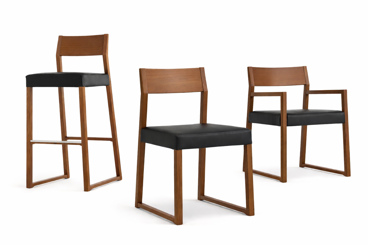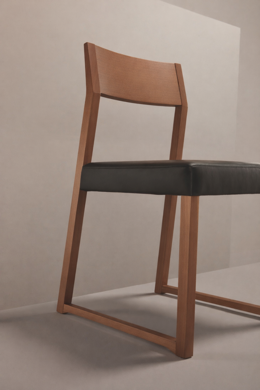 Chair with structure made of solid beech or oak wood. The seat upholstery is made with elastic belts to offer the maximum comfort.