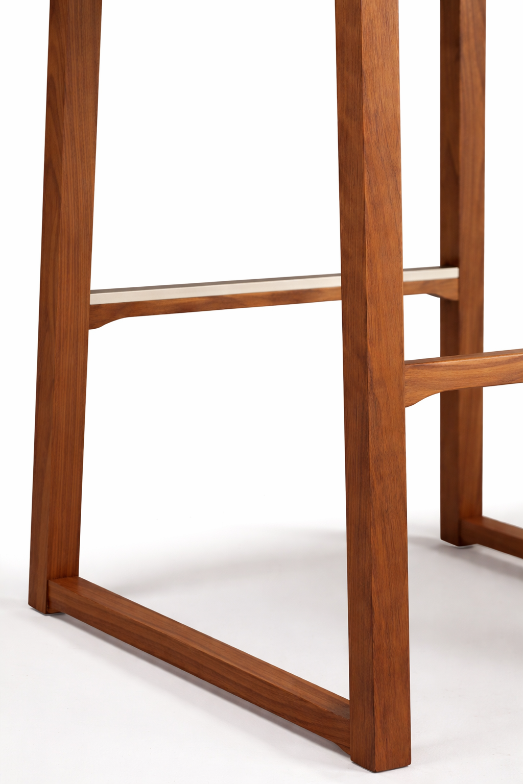 Barstool with structure made of solid beech wood. The seat upholstery is made with elastic belts to offer the maximum comfort. The backrest upholstery is made on the frame and finished with the lateral piping. Footrest in satin aluminum.