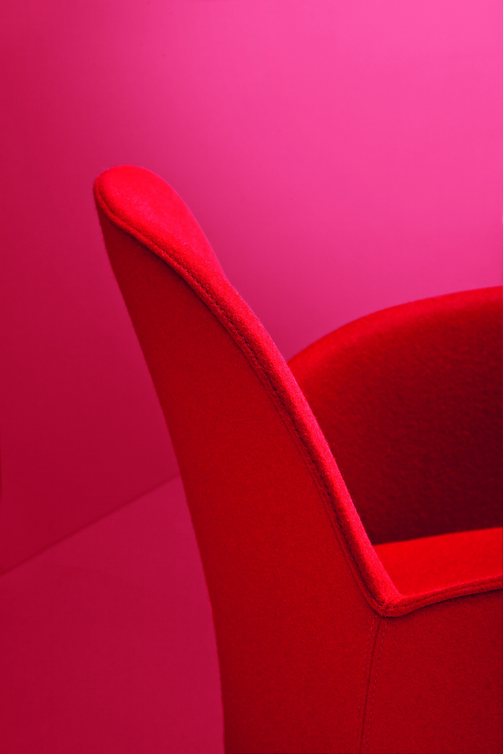 Cold molded polyurethane foam shell, upholstered with a wide range of materials. Solid beech wood base available in several finishes.