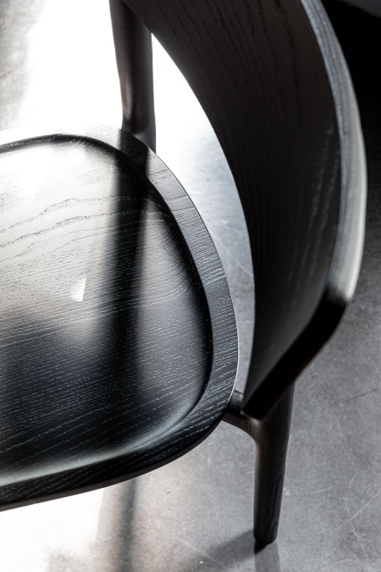 Stackable chair with ash wood frame and ash plywood seat. Available in natural finish, stained to any wooden tone or painted in any color.