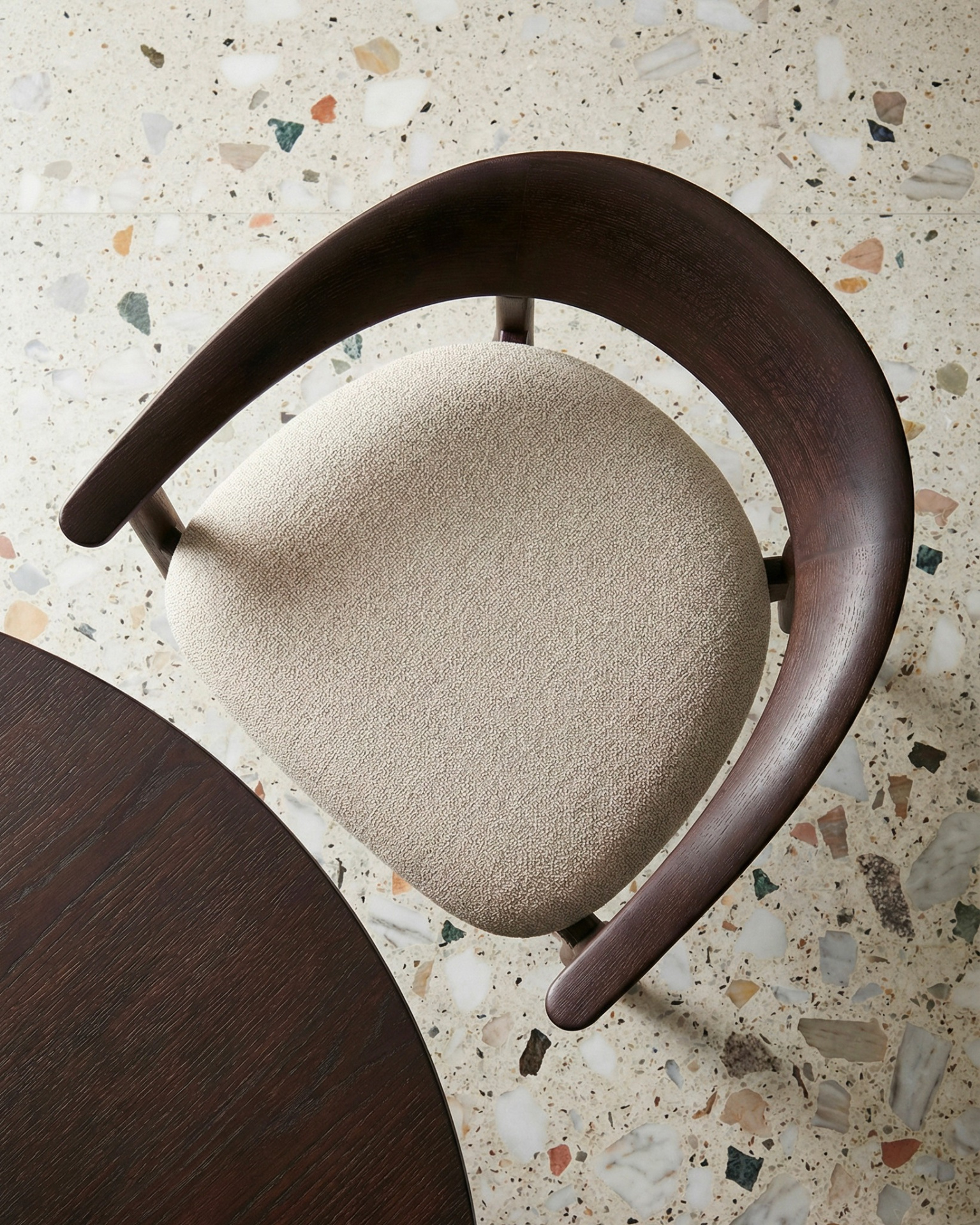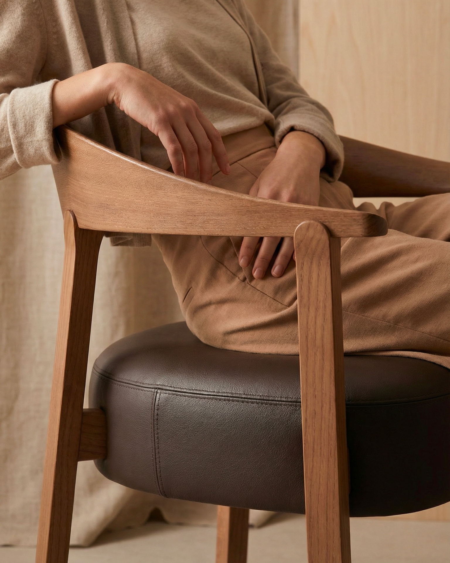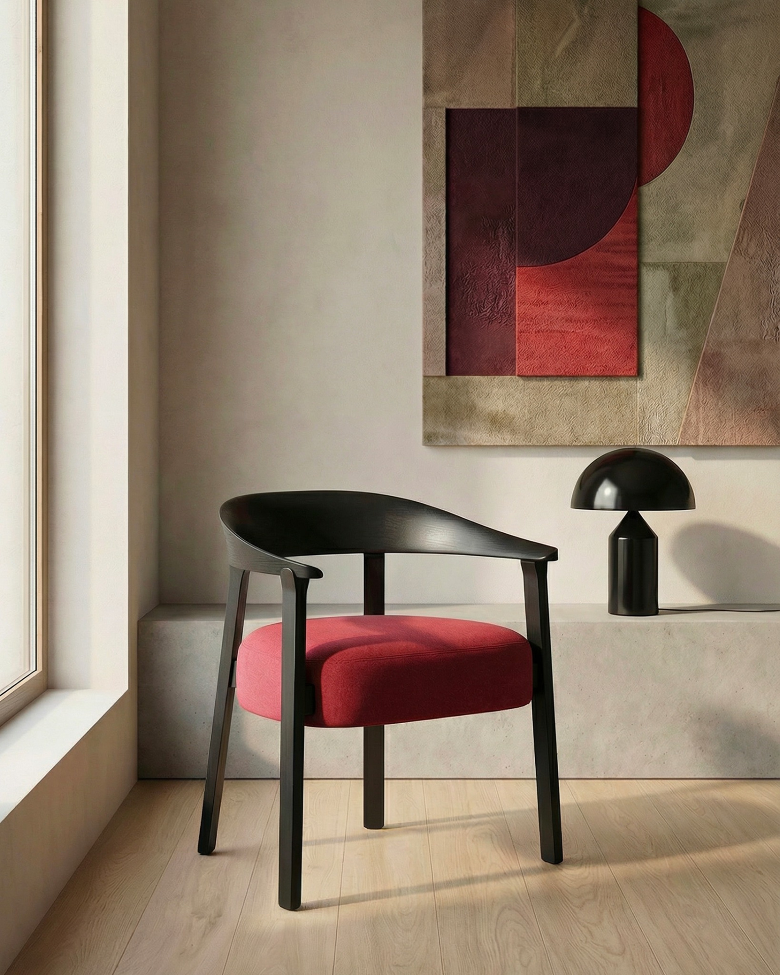 Fauteuil de table avec structure en frêne massif. Assise rembourrée avec l’utilisation de sangles élastiques pour offrir un confort optimal.
