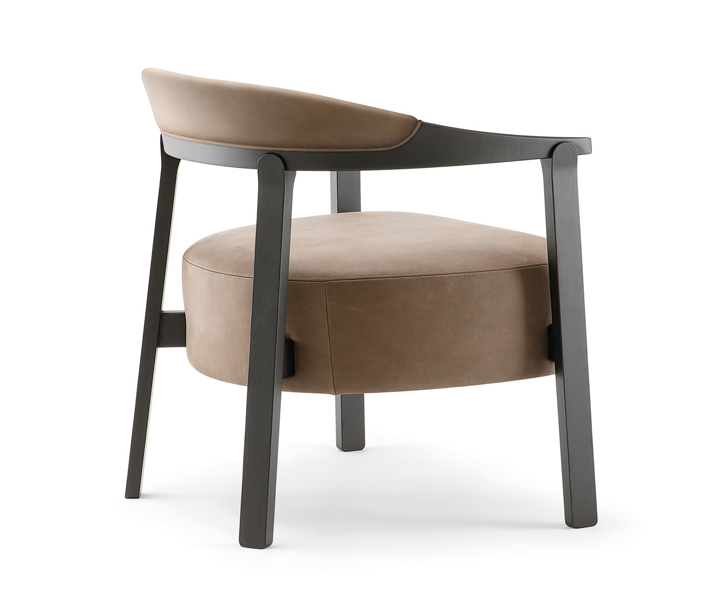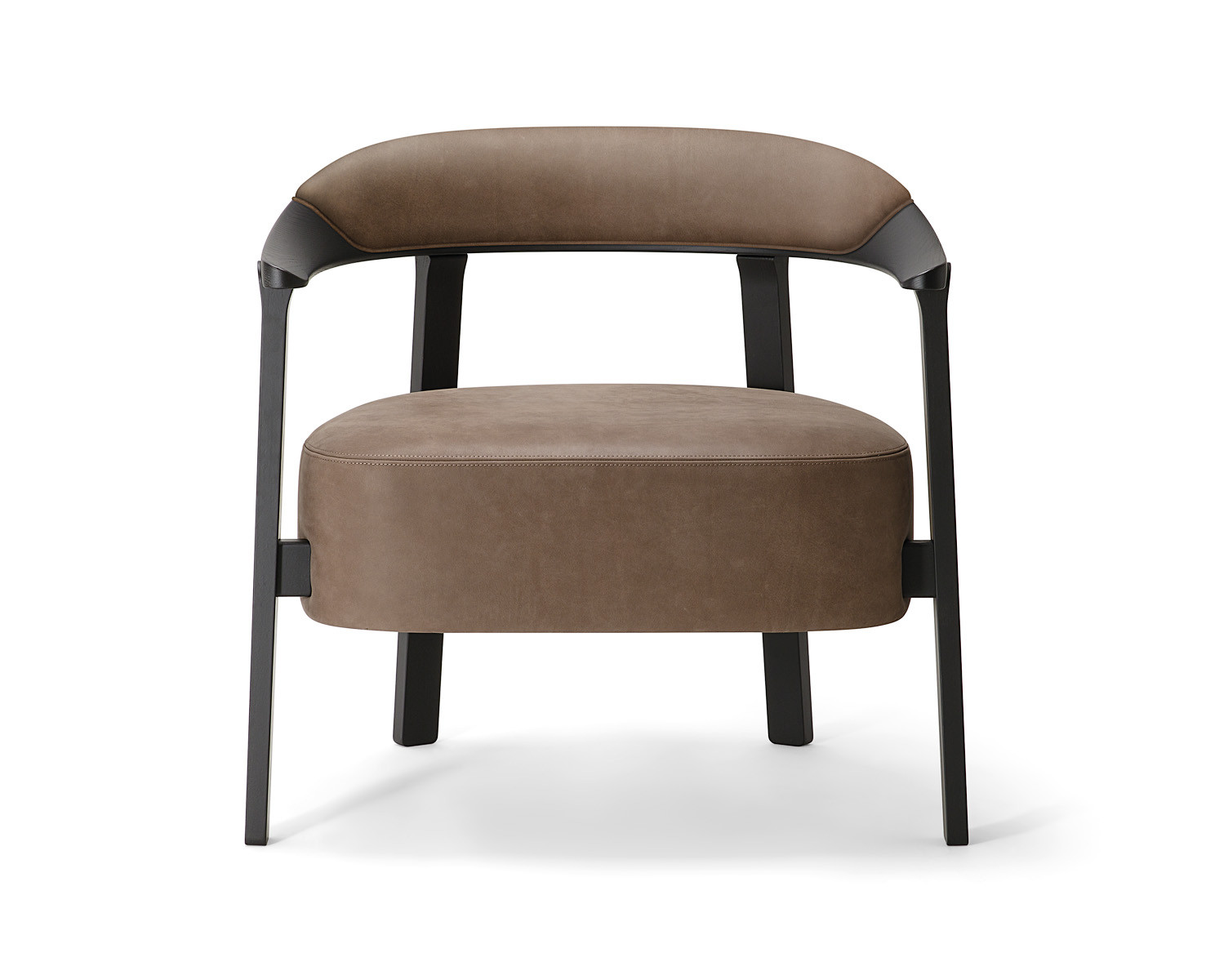 Poltrona lounge con struttura in frassino massello. Sedile rivestito con l'utilizzo di cinghie elastiche per offrire il massimo comfort.Schienale rivestito con piping di rifinitura.